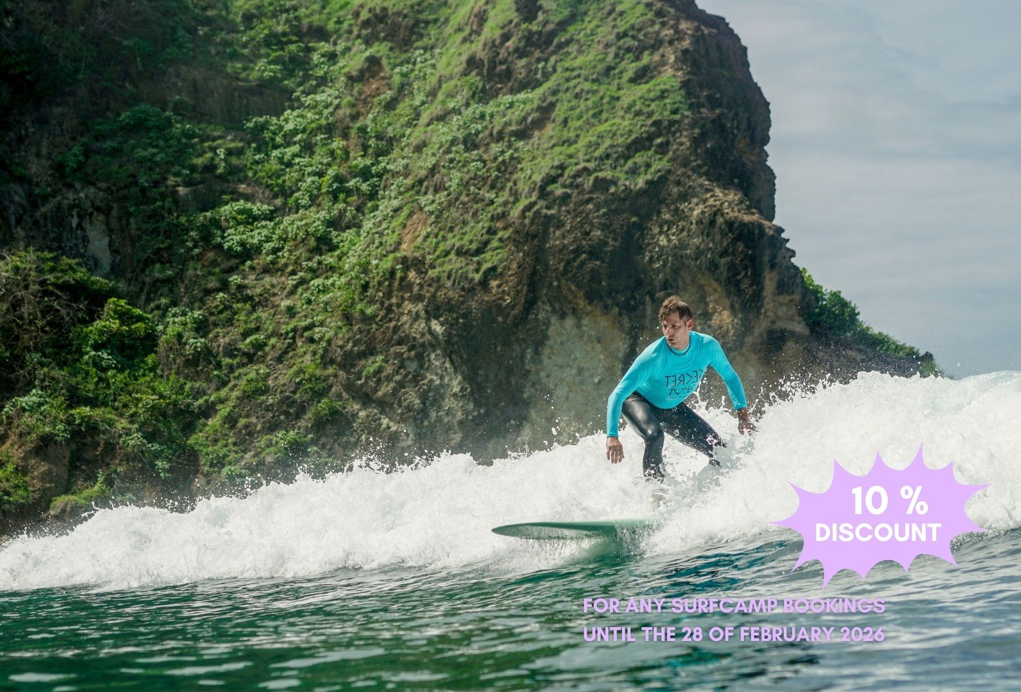 The Secret 7 is our full surf week — the perfect mix of surf, adventure and relaxation. Each day is planned around ocean conditions so you get the best waves, with time to explore local culture, enjoy good food and connect with the group. From your first paddle-out to our sunset session, it’s the complete Secret Spot experience.